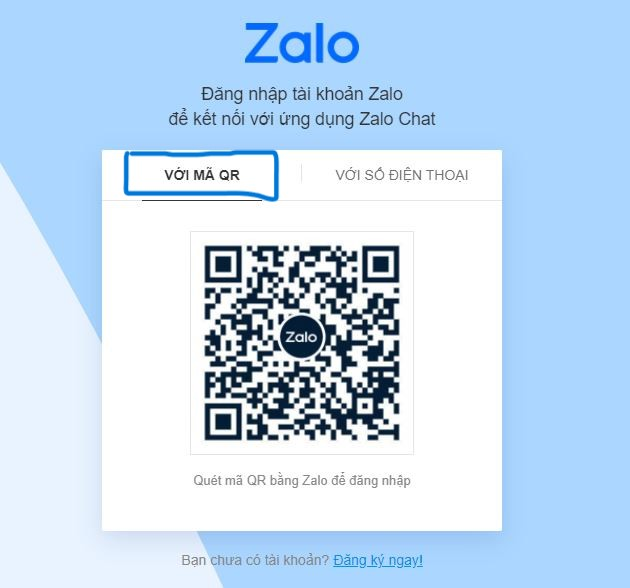 Sau khi đã truy cập vào giao diện Zalo PC, chúng ta sẽ có 2 cách đăng nhập, với hướng dẫn này, người dùng chọn “VỚI MÃ QR“.