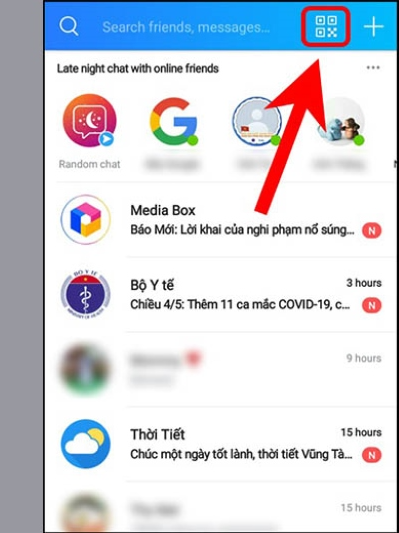Bước 1: Mở điện thoại, chọn vào biểu tượng quét QR code như hình dưới