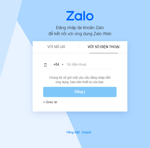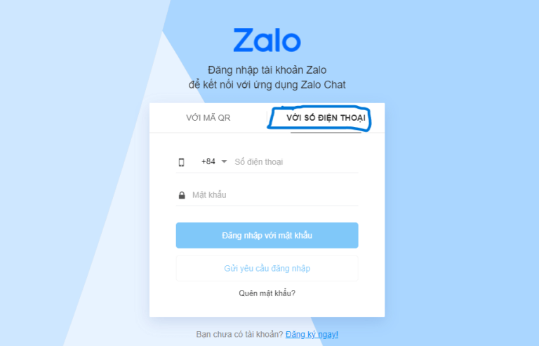 Sau đó, đăng nhập tài khoản Zalo của bạn qua 3 hình thức là thông qua tài khoản như số điện thoại và mật khẩu và sử dụng cách quét mã QR trên thiết bị di động.