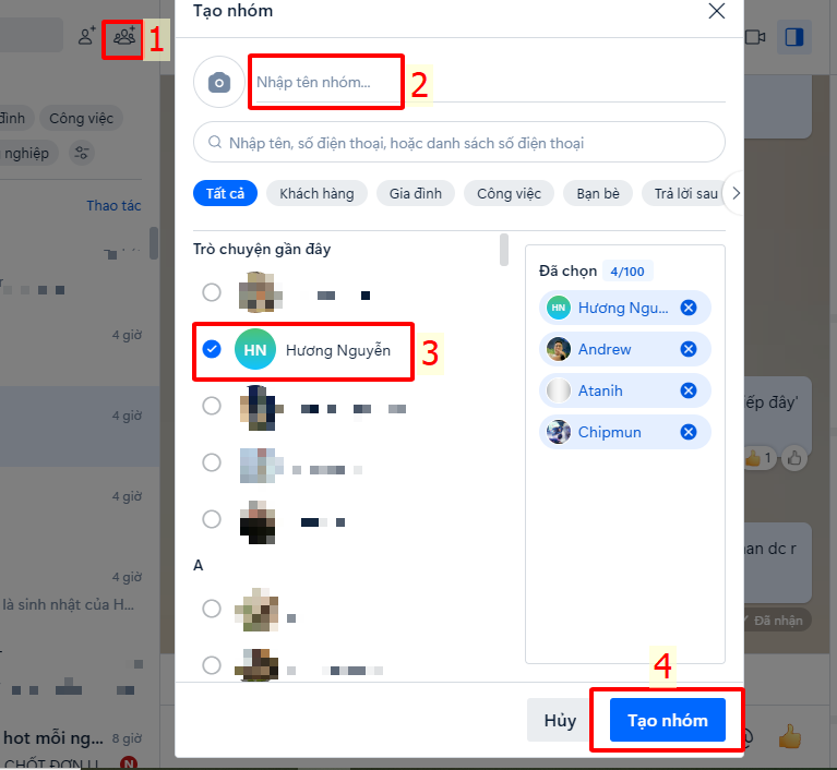 Zalo PC giúp bạn giải quyết vấn đề về 1 nhóm chat nội bộ, bạn chỉ cần ấn vào biểu tượng Tạo nhóm chat > Điền tên nhóm > Thêm thành viên nhóm > Tạo nhóm