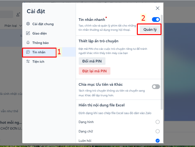 Ấn vào biểu tượng Cài đặt > Tin Nhắn > Quản lý
